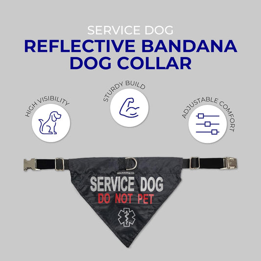 Activedogs Service Dog Bandana Collar - Adjustable Nylon Do Not Pet Service Dog Sash Collar - Durable Center D-Ring & Reflective Medical Insignia for Medium to Large Neck (15"-25")