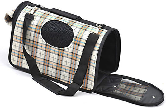 Plaid Pet Outdoor Carrier Soft Sided Cat/Dog Comfort Travel Bag (Beige Plaid - M)