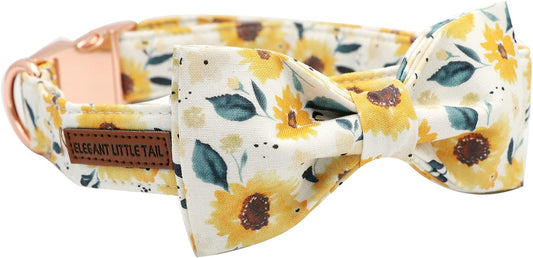 Sunflower Print Dog Collar, Girl Dog Collar with Bow Adjustable Soft Bow Tie Dog Collars for Medium Dogs